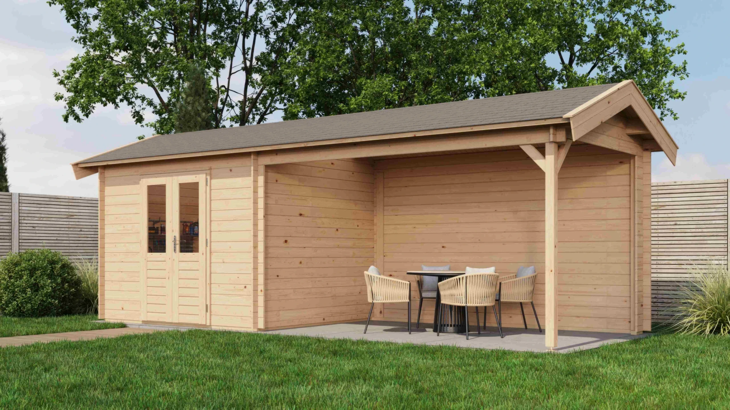 Lugarde Select Log Cabin with veranda Exe 400x400cm + 200cm – Untreated