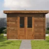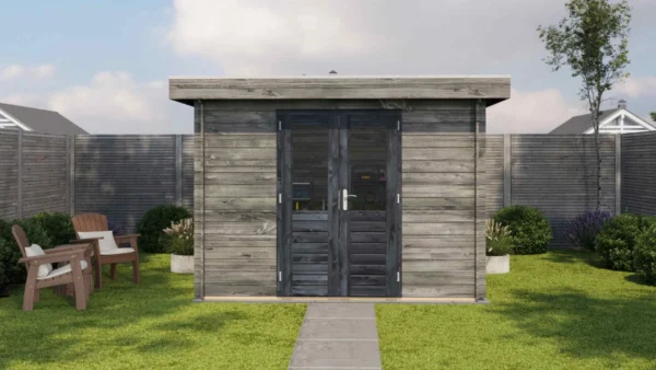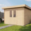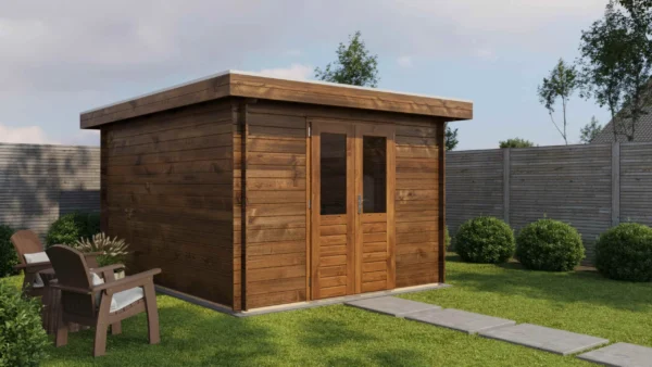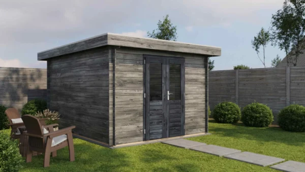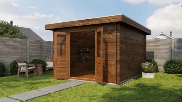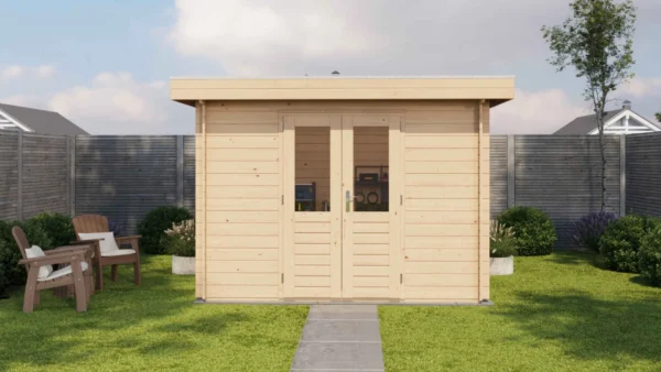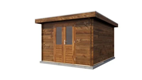 1st Class Kiln-Dried Spruce - 18mm T&G Roofboards - Double Glazing - Double door with laminated 4,5cm thick wood - all iron- and hardware included With an overall footprint of 309, it’s ideal for gardens where you want maximum usability without wasting space.