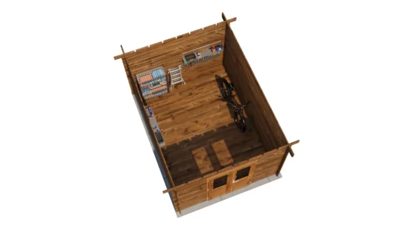 • Walls made from 28 mm logs for stability and insulation.