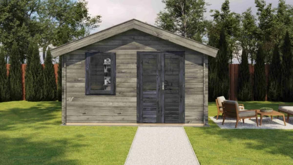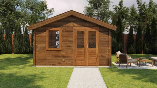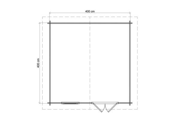 1st Class Kiln-Dried Spruce - 18mm T&G Roofboards - Double Glazing - Double door and top hung window with laminated 4,5cm thick wood - all iron- and hardware included With an overall footprint of 412, it’s ideal for gardens where you want maximum usability without wasting space. The integrated veranda (veranda left side) adds a sheltered area for seating, storage, or keeping the entrance protected.