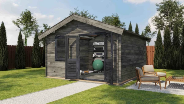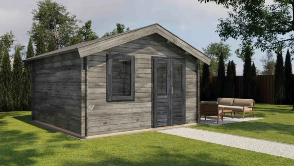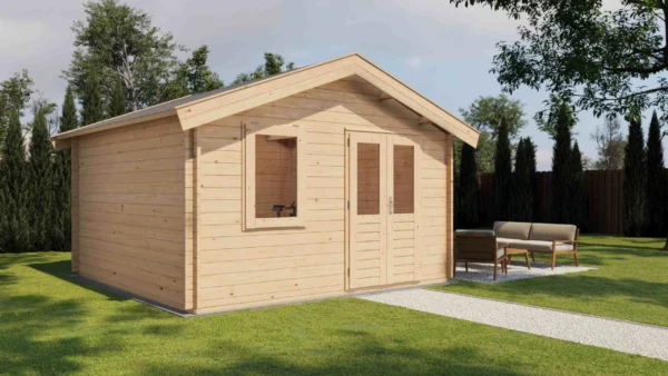 • Walls made from 44 mm logs for stability and insulation.