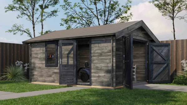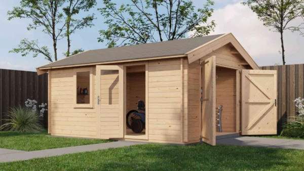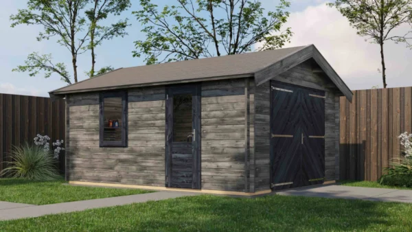 1st Class Kiln-Dried Spruce - 18mm T&G Roofboards - Double Glazing - Double door and top hung window with laminated 4,5cm thick wood - all iron- and hardware included + Double garagedoor With an overall footprint of 412, it’s ideal for gardens where you want maximum usability without wasting space.