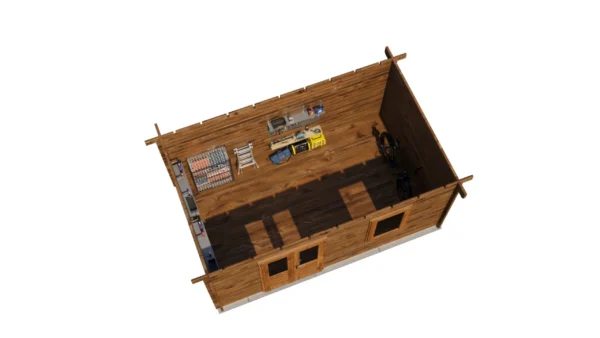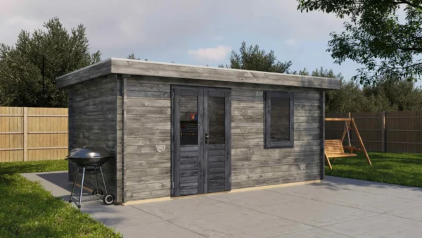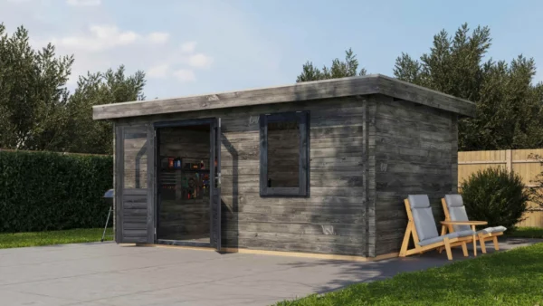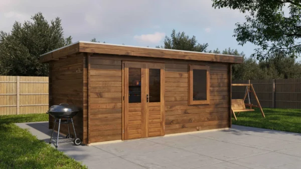 1st Class Kiln-Dried Spruce - 18mm T&G Roofboards - Double Glazing - Double door and top hung window with laminated 4,5cm thick wood - all iron- and hardware included With an overall footprint of 412, it’s ideal for gardens where you want maximum usability without wasting space.