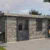 Lugarde Select Log cabin with canopy 400x400cm + 400cm - Pressure treated Grey - excl. EPDM - 44mm