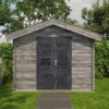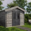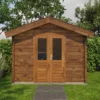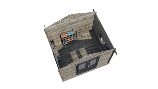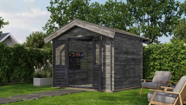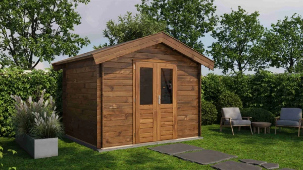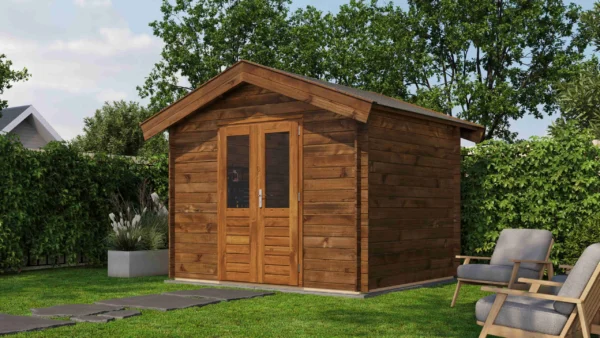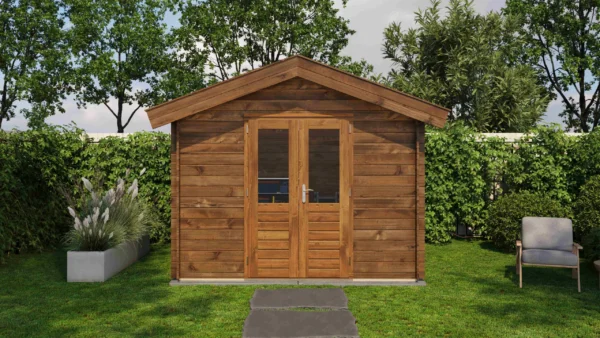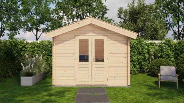 1st Class Kiln-Dried Spruce - 18mm T&G Roofboards - Double Glazing - Double door with laminated 4,5cm thick wood - all iron- and hardware included With an overall footprint of 309, it’s ideal for gardens where you want maximum usability without wasting space.