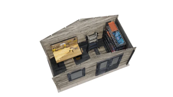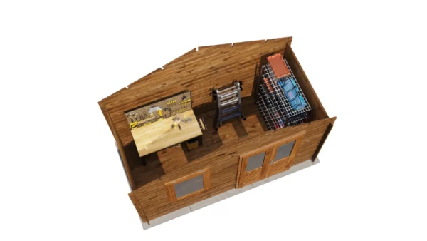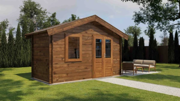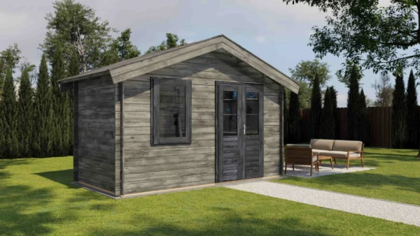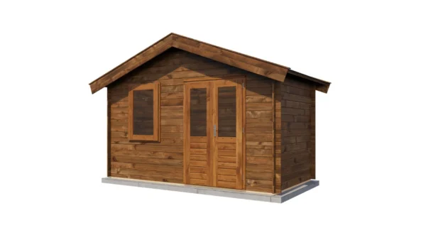 1st Class Kiln-Dried Spruce - 18mm T&G Roofboards - Double Glazing - Double door and top hung window with laminated 4,5cm thick wood - all iron- and hardware included With an overall footprint of 412, it’s ideal for gardens where you want maximum usability without wasting space. The integrated veranda (veranda left side) adds a sheltered area for seating, storage, or keeping the entrance protected.