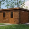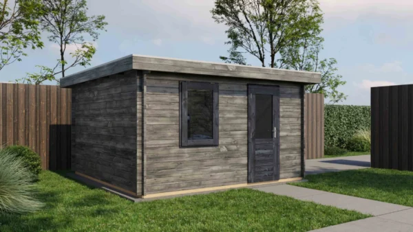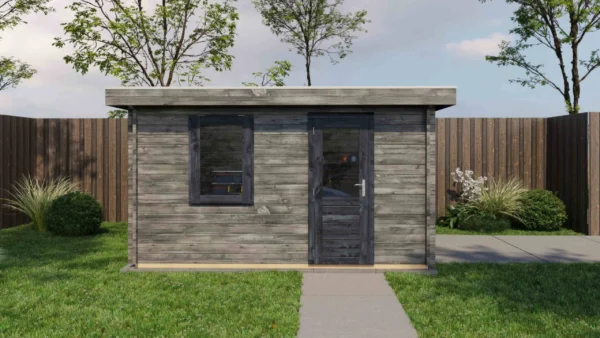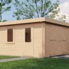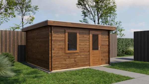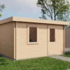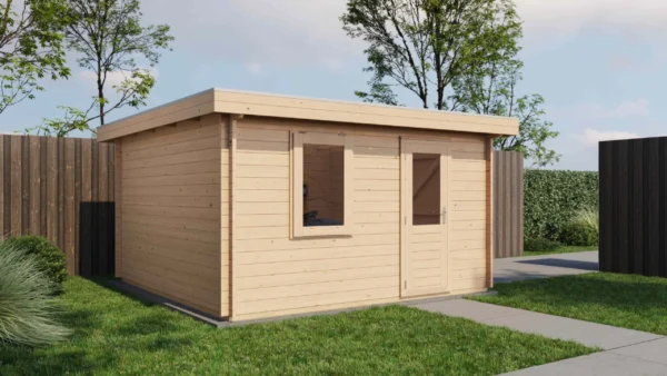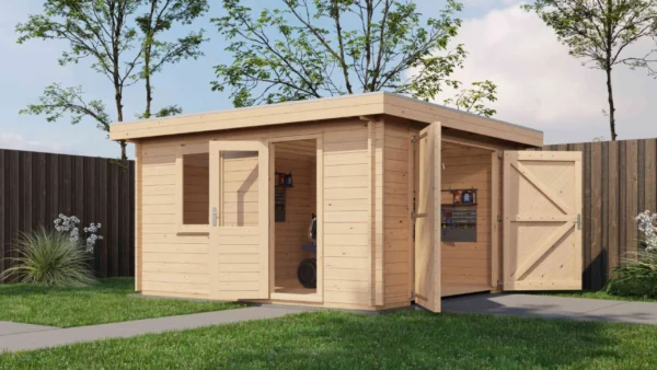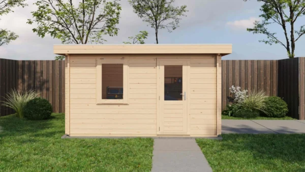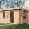 - Walls made from 44 mm logs for stability and insulation.