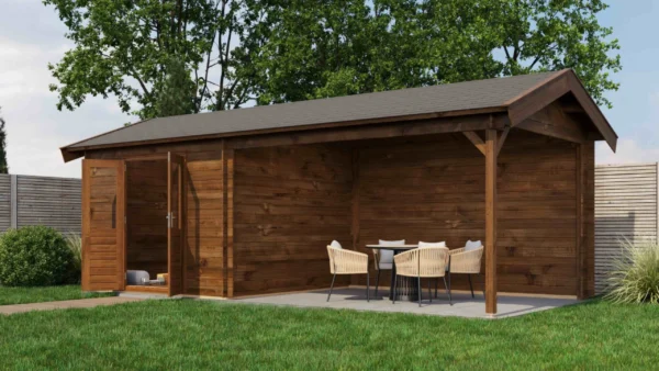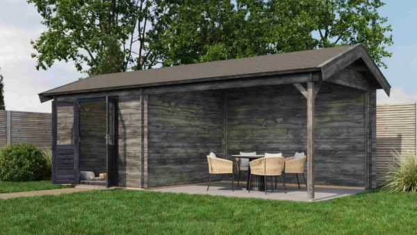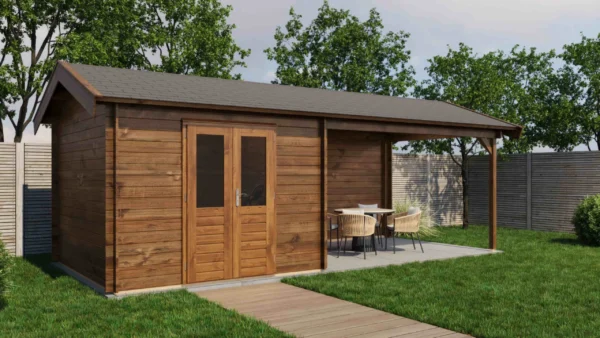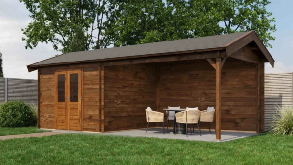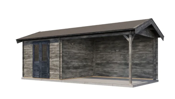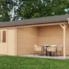 Lugarde Select Log Cabin with veranda Berkshire 300x300cm + 400cm – Untreated (309) – Lugarde Select Log Cabin, 28 mm walls, Apex Roof, veranda (veranda left side).