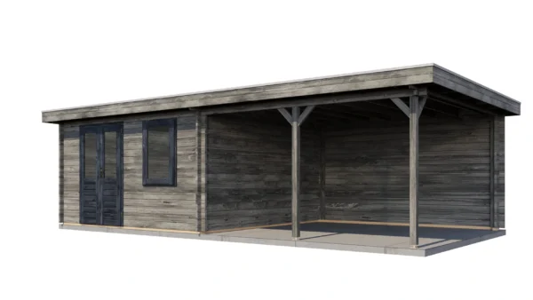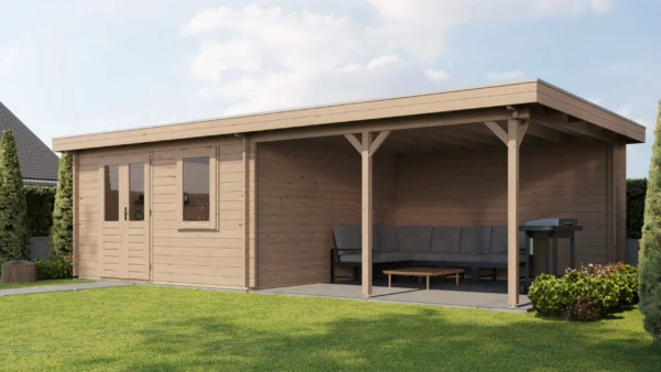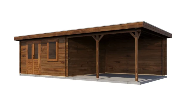 Lugarde Select Log Cabin with veranda Malvern 400x400cm + 400cm – Untreated (412) – Lugarde Select Log Cabin, 44 mm walls, Flatroof, veranda (veranda left side).