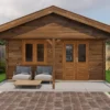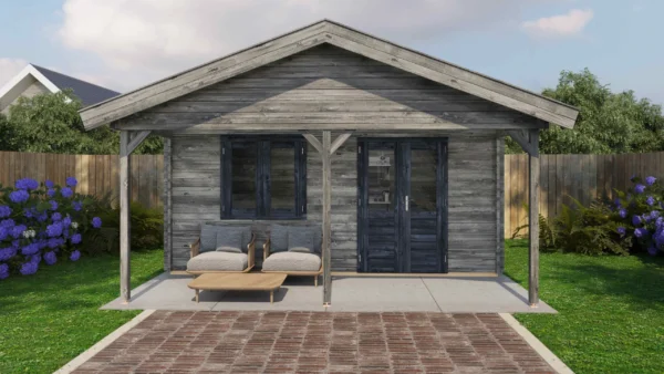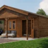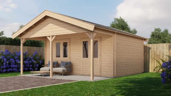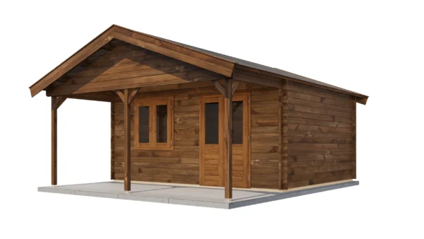 Lugarde Select Log Cabin with veranda Stour 500x400cm + 200cm – Untreated (515) – Lugarde Select Log Cabin, 44 mm walls, Apex Roof, veranda (front veranda).