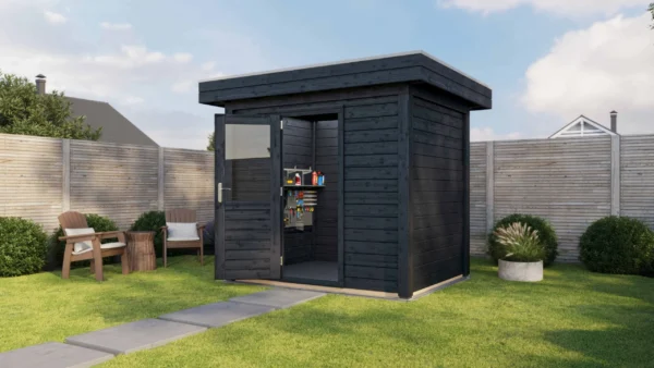 Lugarde Select Modern cabin Sheffield 250x200cm – Untreated (200cm) – Lugarde select Modern, 28 mm walls, Flatroof, Untreated.