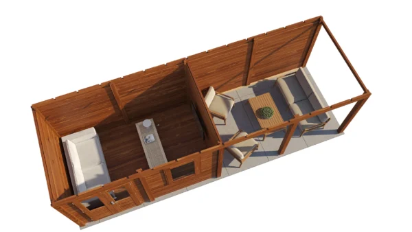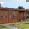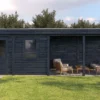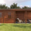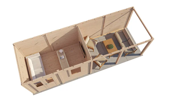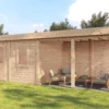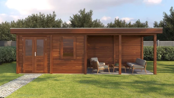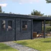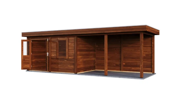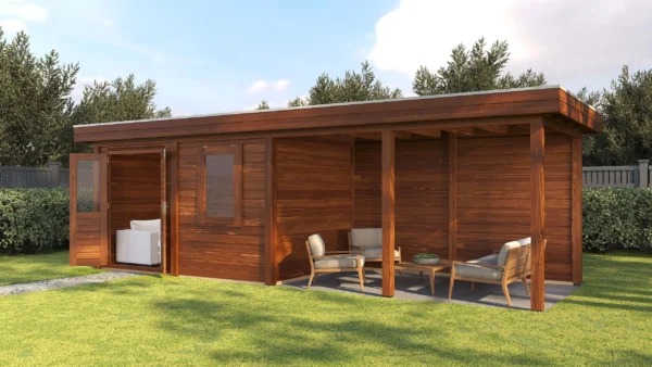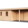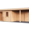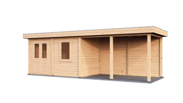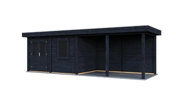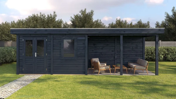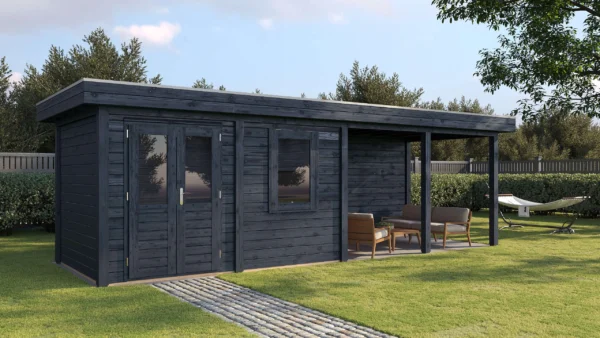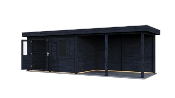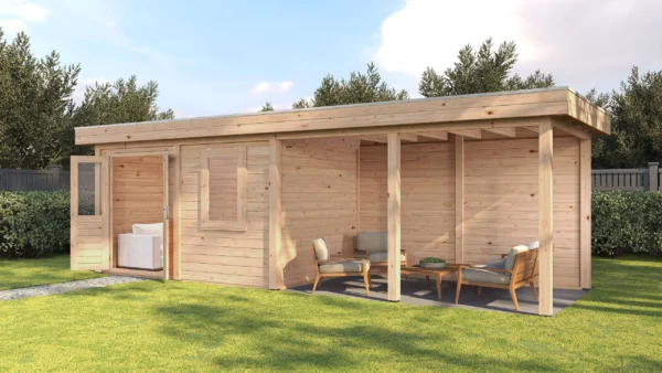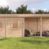 Lugarde Select Modern cabin with veranda Belfast 388x250cm + 400cm – Untreated (764cm) – Lugarde select Modern, 28 mm walls, Flatroof, veranda (veranda left side).