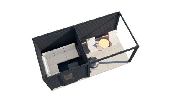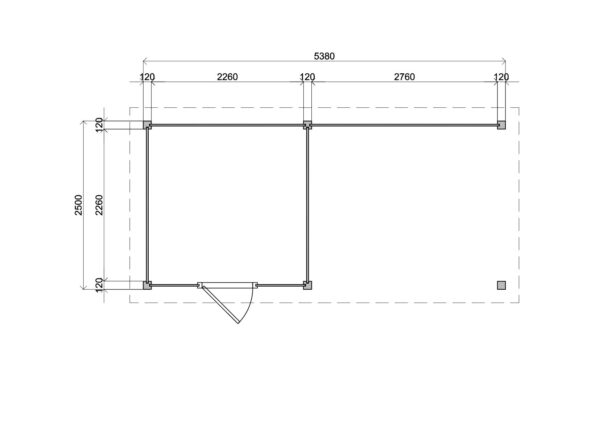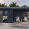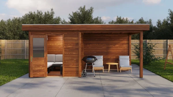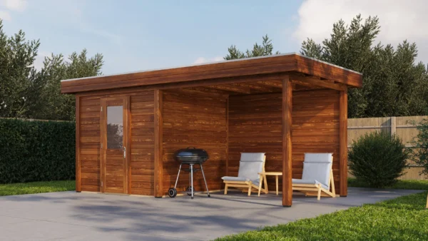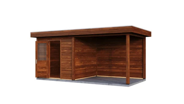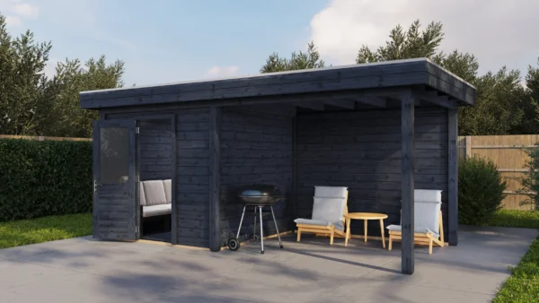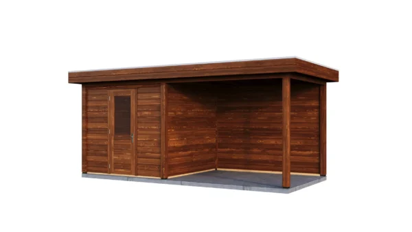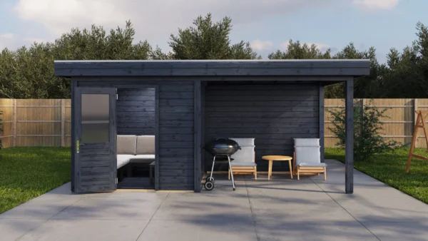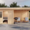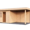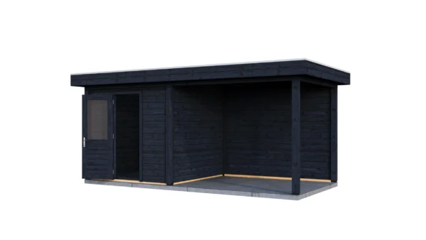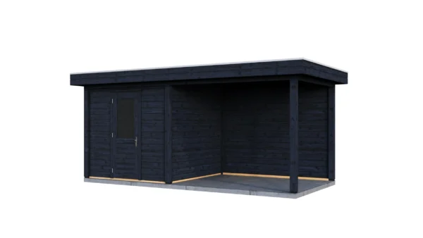 Lugarde Select Modern cabin with veranda Birmingham 250x250cm + 300cm – Untreated (538cm) – Lugarde select Modern, 28 mm walls, Flatroof, veranda (veranda left side).