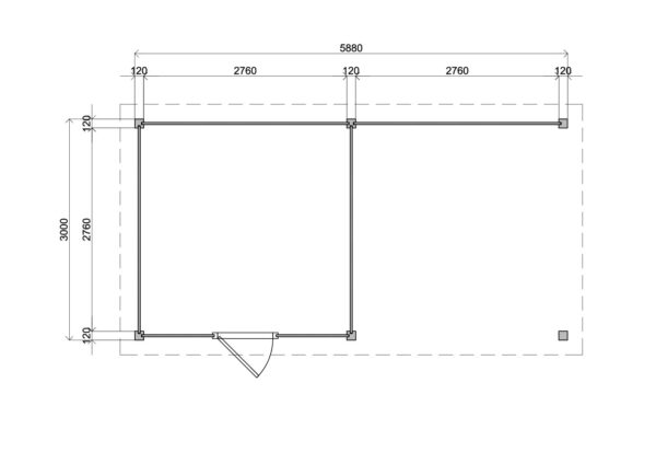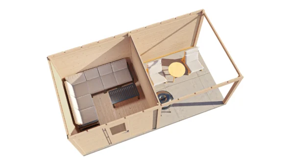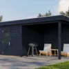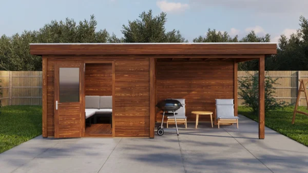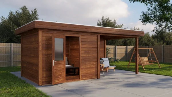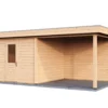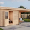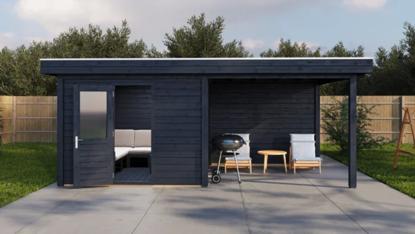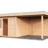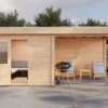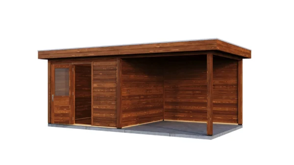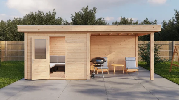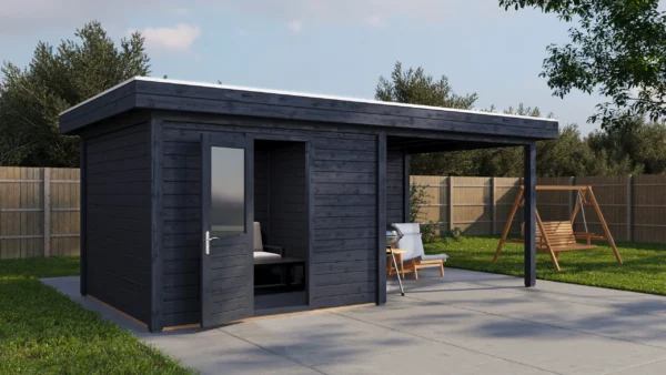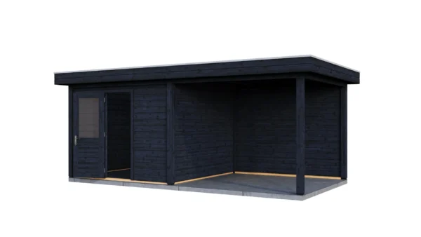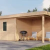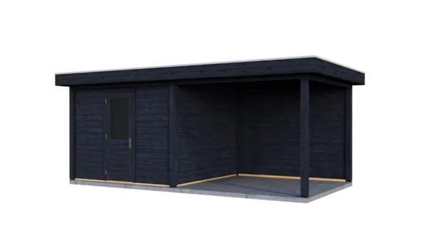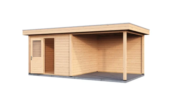 Lugarde Select Modern cabin with veranda Cambridge 300x300cm + 300cm – Untreated (588cm) – Lugarde select Modern, 28 mm walls, Flatroof, veranda (veranda left side).