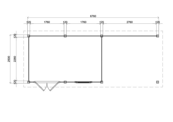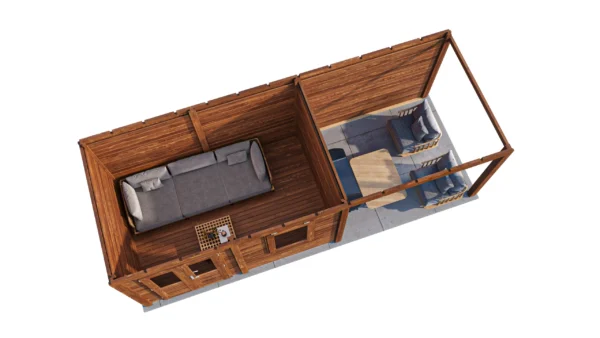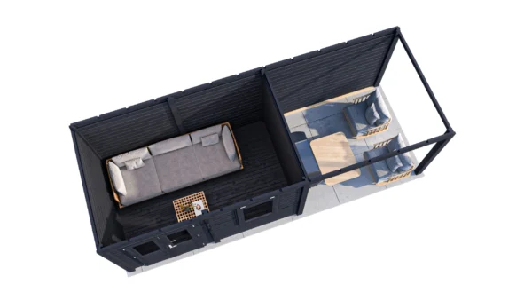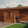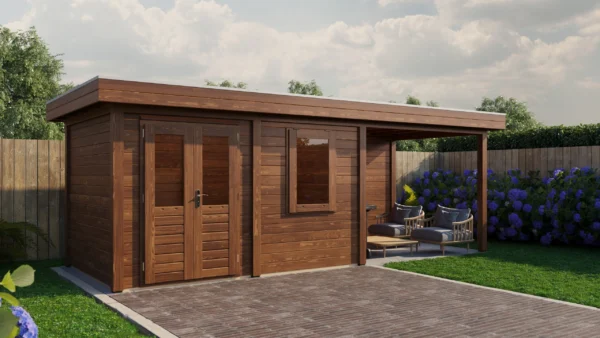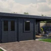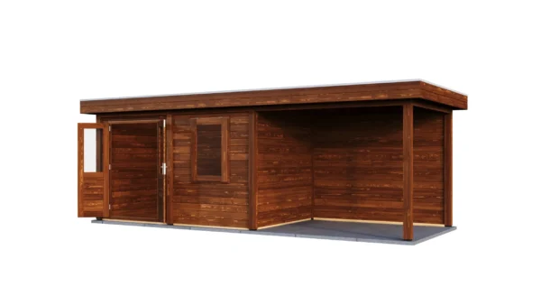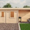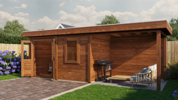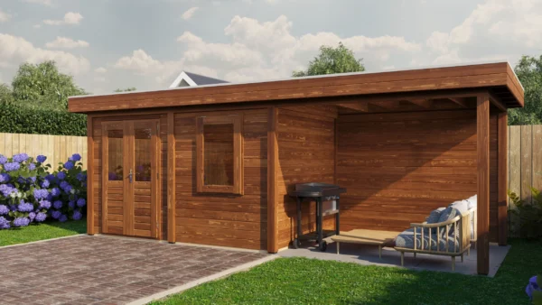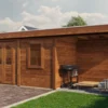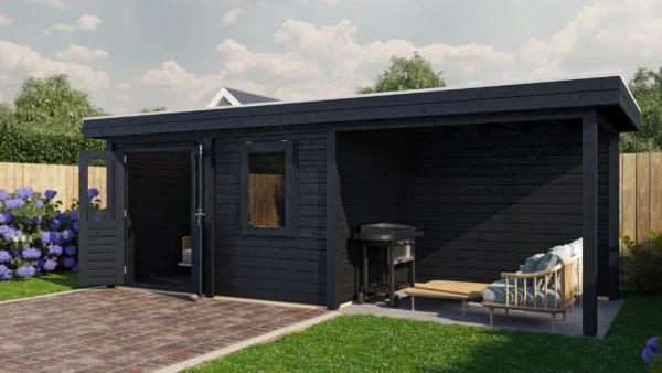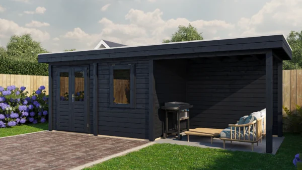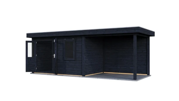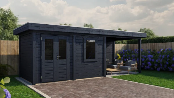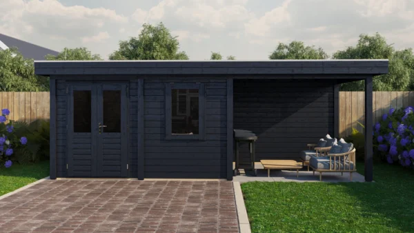 Lugarde Select Modern cabin with veranda Dublin 388x250cm + 300cm – Untreated (676cm) – Lugarde select Modern, 28 mm walls, Flatroof, veranda (veranda left side).