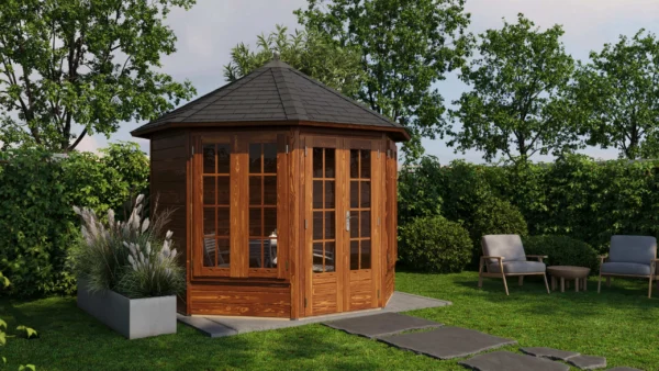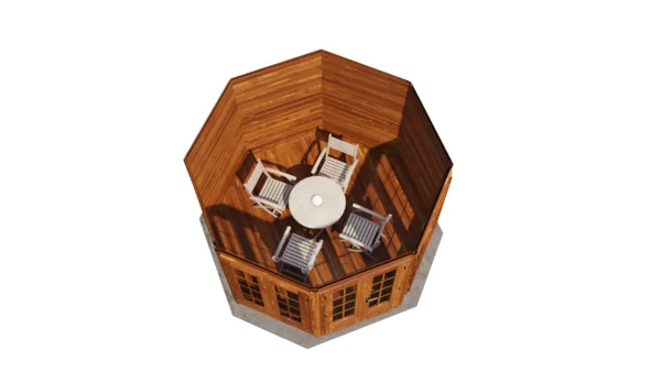 Lugarde Select Prima summerhouse Arran Ø300cm – Untreated (Ø300) – Lugarde select Prima, 28 mm walls, octagonal, untreated.