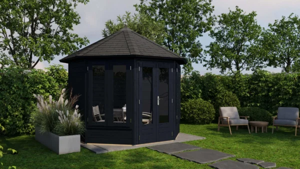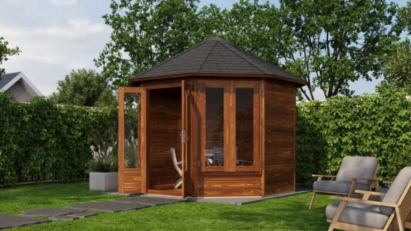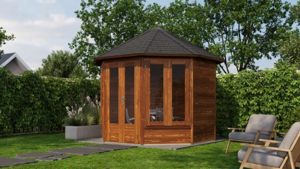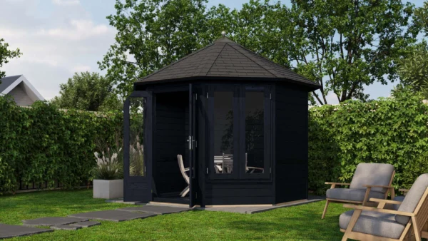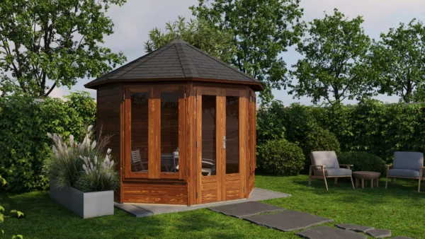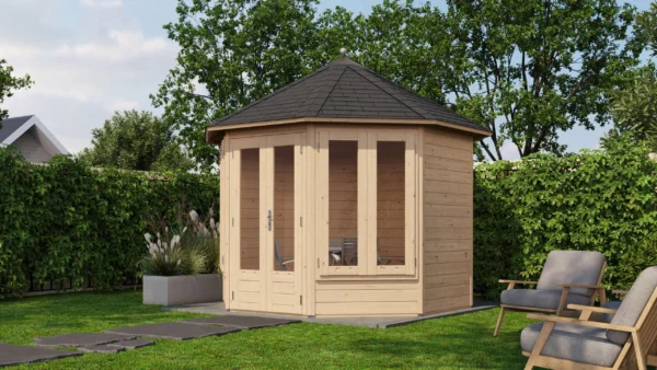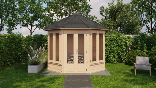 Lugarde Select Prima summerhouse Helensburgh Ø300cm – Untreated (Ø300) – Lugarde select Prima, 28 mm walls, octagonal, untreated.