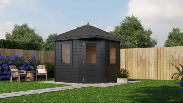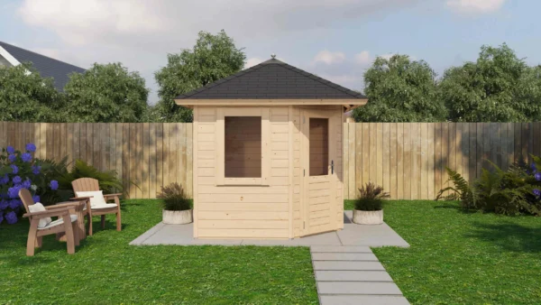 Lugarde Select Prima summerhouse Padstow 240x240cm – Untreated (247) – Lugarde select Prima, 44 mm walls, five corner pyramidroof, untreated.