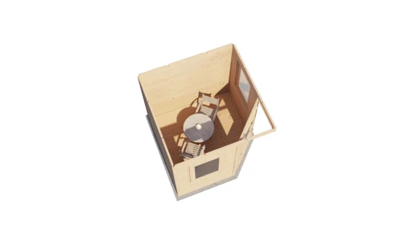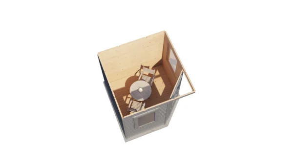 1st Class Kiln-Dried Spruce - 18mm T&G Roofboards - Double Glazing - Double door and top hung window with laminated 4,5cm thick wood - all iron- and hardware included With an overall footprint of 412, it’s ideal for gardens where you want maximum usability without wasting space. The integrated veranda (veranda left side) adds a sheltered area for seating, storage, or keeping the entrance protected.